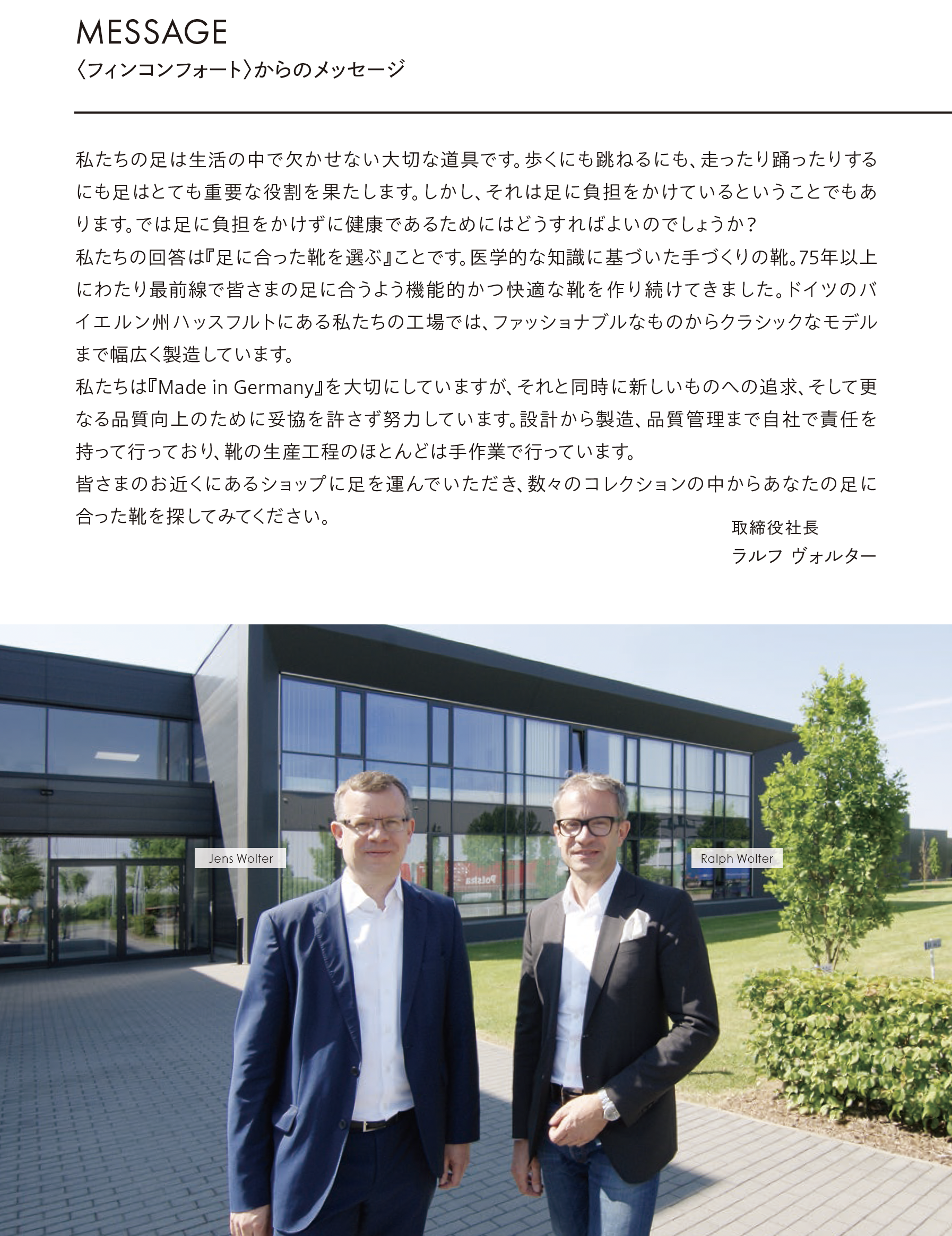 1980年ごろから整形外科医、整形外科靴職人などの専門家と共同し、履くことによっていろいろな足の変形を予防できる靴の開発をすすめ、1986年にフィンコンフォートというブランドを立ち上げ、現在では、ドイツの専門的な靴屋さんではほとんどが扱っている、ドイツコンフォートシューズメーカーの最大手となっています。